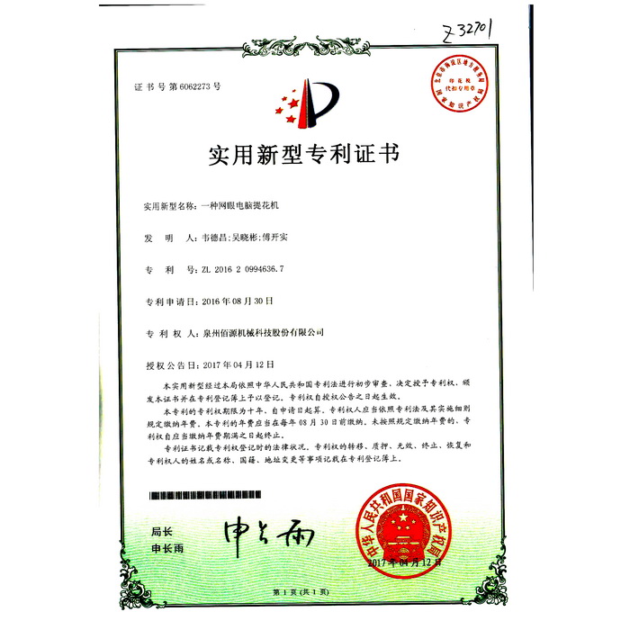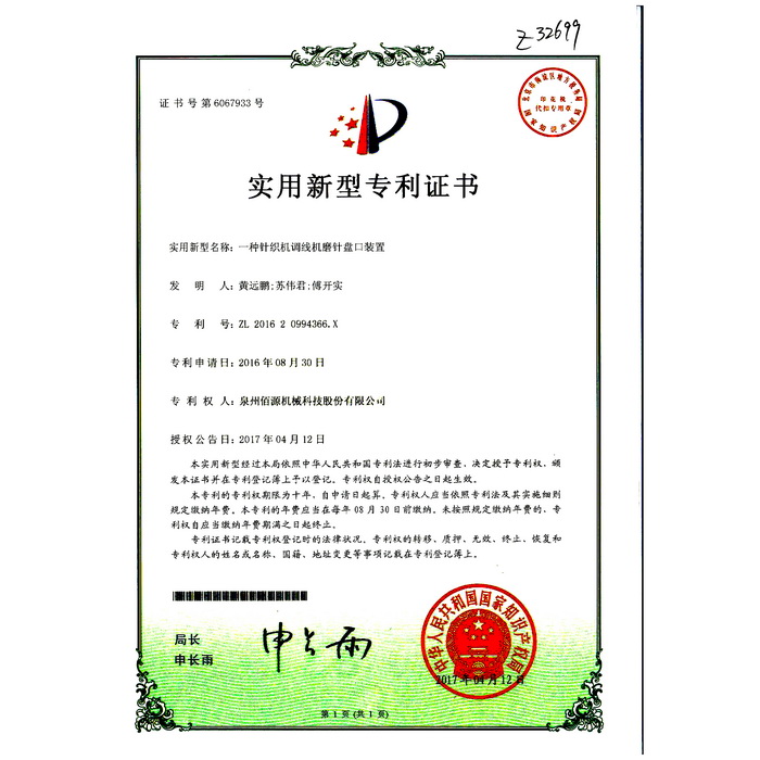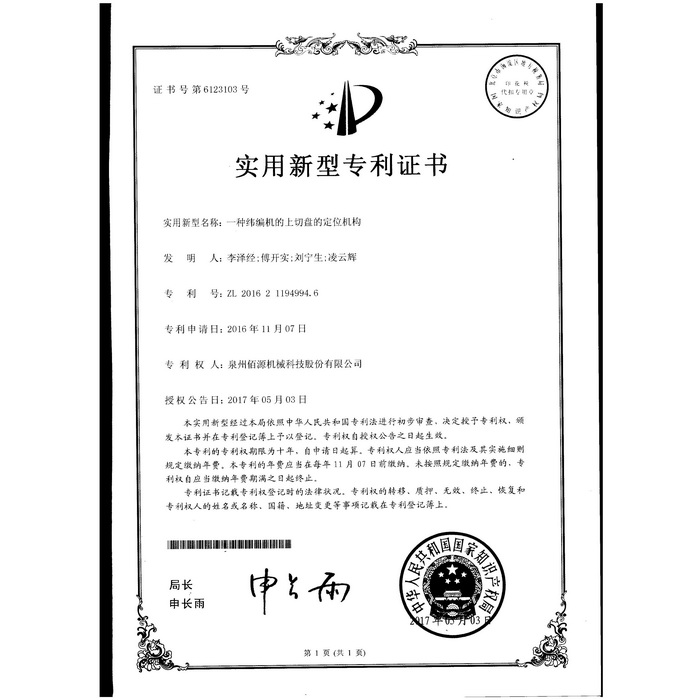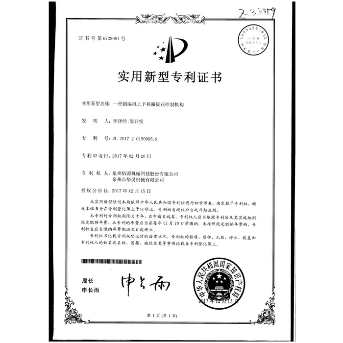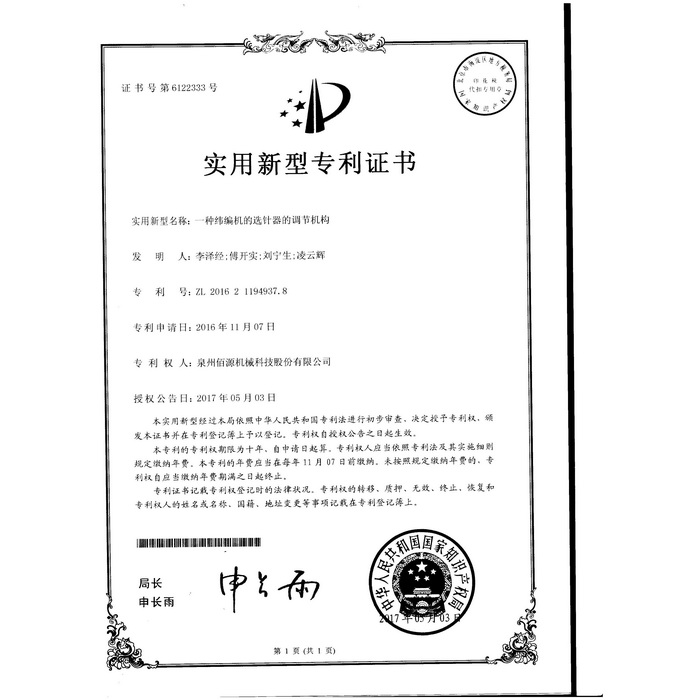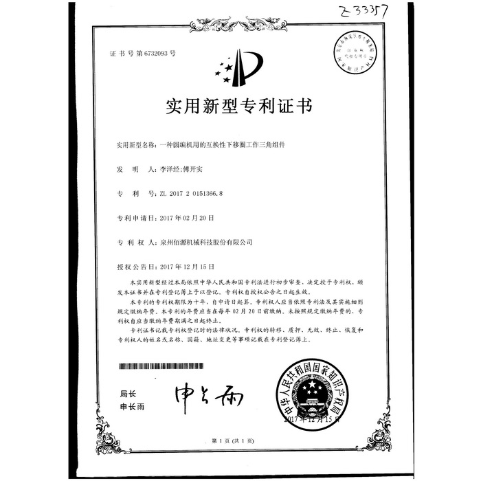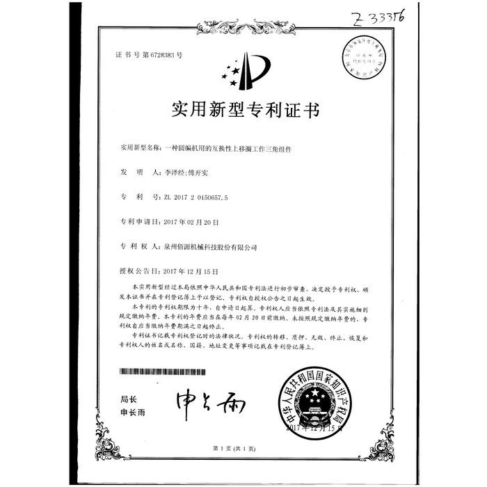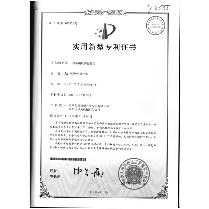 新型專利-一種圓編機的提花片